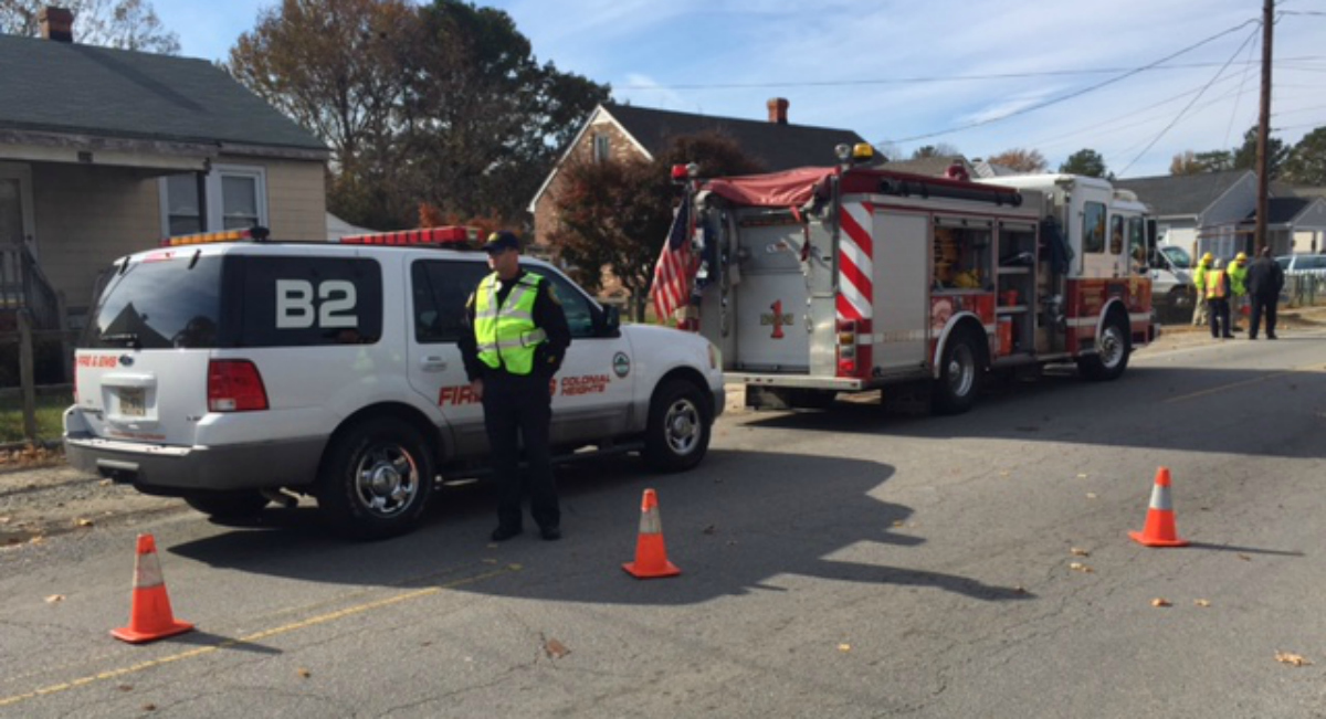 CHESTERFIELD COUNTY, Va. — A Chesterfield road was closed Tuesday after a Columbia Gas contractor hit a gas line.