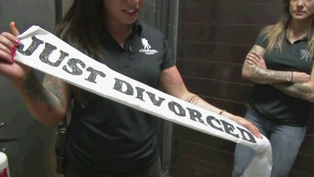 The machine gun is for the divorcee, but there will also be an M4 and an MP5 for the divorcee's party, which can be up to four people. The approximate one hour shindig also includes access to their VIP lounge, complimentary transportation, and a “just divorced sash” they specially made.