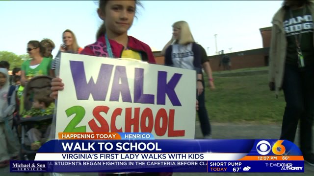 HENRICO COUNTY, Va. -- Virginia First Lady Dorothy McAuliffe joined hundreds of parents and students for a Walk-to-School event in Henrico County. McAuliffe walked to class with children from Ridge Elementary School and Tuckahoe Middle School Tuesday morning.