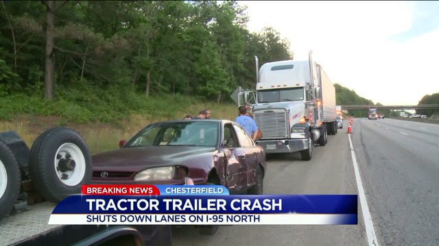 CHESTERFIELD COUNTY, Va. -- State police are working a crash involving a tractor-trailer that has partially closed Interstate 95 in Chesterfield County Wednesday evening.