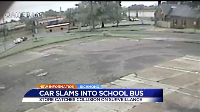 While there has been no official word yet from Richmond police, photos show the sedan has extensive damage to its front-end. The school bus shows damage to the rear, right side of vehicle and back bumper.