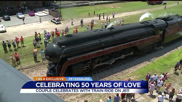 PETERSBURG, Va. -- A Virginia couple celebrating a milestone anniversary had a special connection to Sunday’s vintage train ride that ran from Lynchburg and dropped passengers off in historic Old Towne Petersburg.