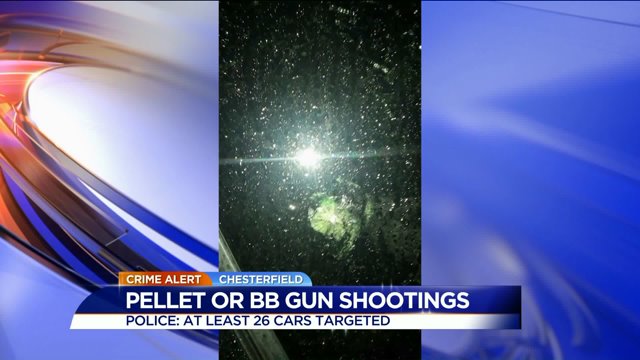 CHESTERFIELD COUNTY, Va. -- More than two dozens reports of BBs or pellets causing damage are now under investigation in Chesterfield County, according to police. Countywide, at least 26 incidents have been reported. Some involve drivers who have had their windows shattered, police said. Many of those incidents were reported on Genito Road.