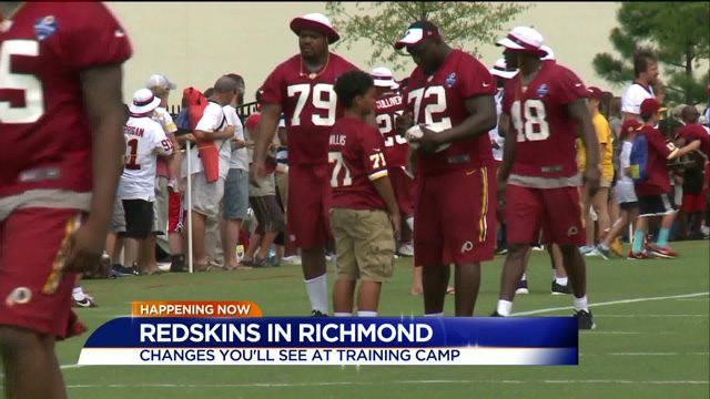 RICHMOND, Va. -- Washington Redskins Training Camp begins Thursday at Bon Secours Washington Redskins Training Center on West Leigh St, near Boulevard, in Richmond. From today until August 16, the team will hold near daily practices at the facility. Those practice sessions are free and open to the public. A Fan Appreciation Day is scheduled for Saturday, August 15.
