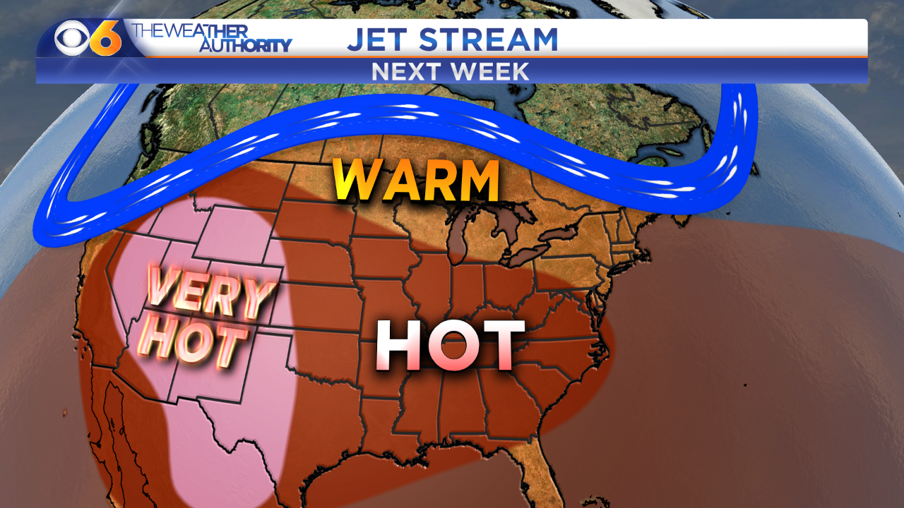 With the jet stream back to a more summer-like pattern, the hot and humid weather should stick around for a while. We may see some clouds or rain from Erika, depending upon the exact track, towards the end of the week, which would temper the heat a little bit.