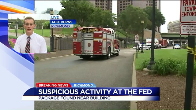 RICHMOND, Va. -- A HAZMAT crew is investigating a suspicious package found on the loading dock outside the Federal Reserve building near Brown's Island in downtown Richmond. While investigators do not believe the package poses a threat, they hope to preserve the suspicious substance found on the package. Police have not yet determined the nature of the substance and and hope to preserve it as evidence.
