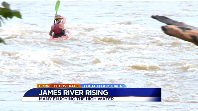 RICHMOND, Va. -- Experienced kayakers are taking advantage of the swelling James River and paddling through the higher waters.