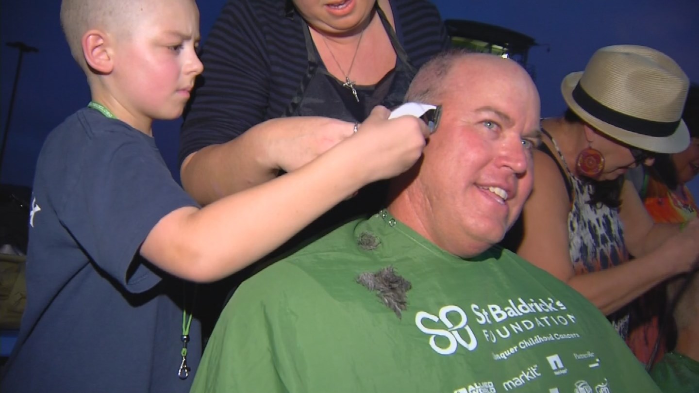 PHOENIX, Ariz. — At least a dozen Phoenix firefighters shaved their heads Saturday in solidarity with a Phoenix boy with cancer and to raise money for childhood cancer research.