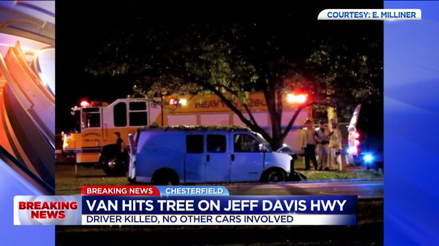 CHESTERFIELD COUNTY, Va. -- An investigation is underway into a fatal van crash in Chesterfield County. Tony Gray, 40, was killed when his 2003 white GMC van ran off Jefferson Davis Highway and hit a tree Sunday at about 10:27 p.m., a Chesterfield Police spokesperson said.