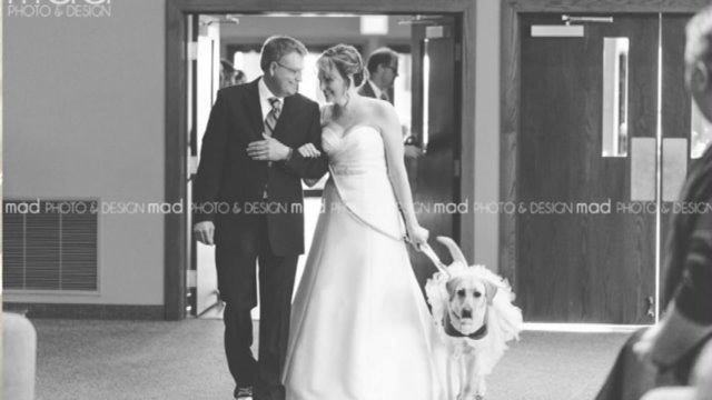 Man's best friend comes to the aid of an anxious bride.