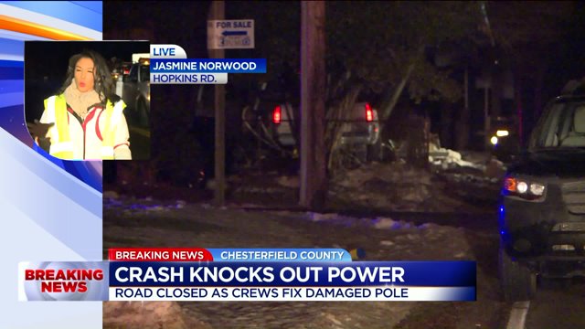 CHESTERFIELD COUNTY, Va -- Several customers were left without power Thursday morning after a car hit a power pole. At one point, almost one thousand customers were in the dark.