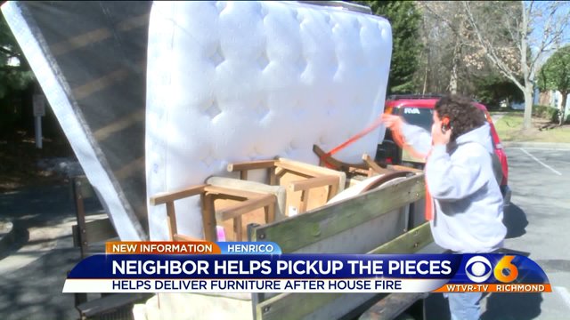 HENRICO COUNTY, Va. – A Henrico couple whose home was damaged in a fire last week received a special delivery thanks to one of their neighbors Saturday.