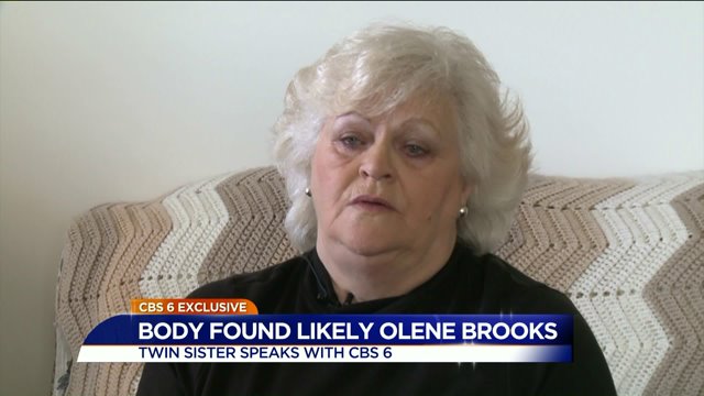 AMELIA COUNTY, Va. -- A body found in Nottoway County was likely that of Olene Brooks, her family member said after meeting with Amelia County investigators. A fisherman found the badly decomposed remains in the woods off Route 307, about 15 miles from where the missing 68-year-old grandmother was last seen alive.