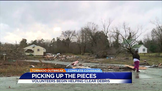 Volunteers started their work on homes that weren’t destroyed and are still livable. About 20 airmen and women from Langley Air Force base also arrived in the area on their own accord. The clean-up is expected to take weeks and even months.