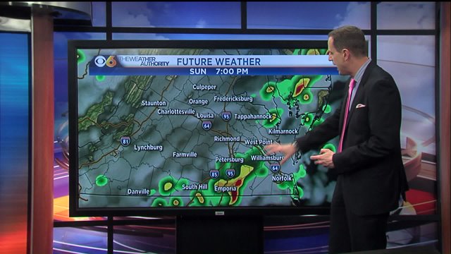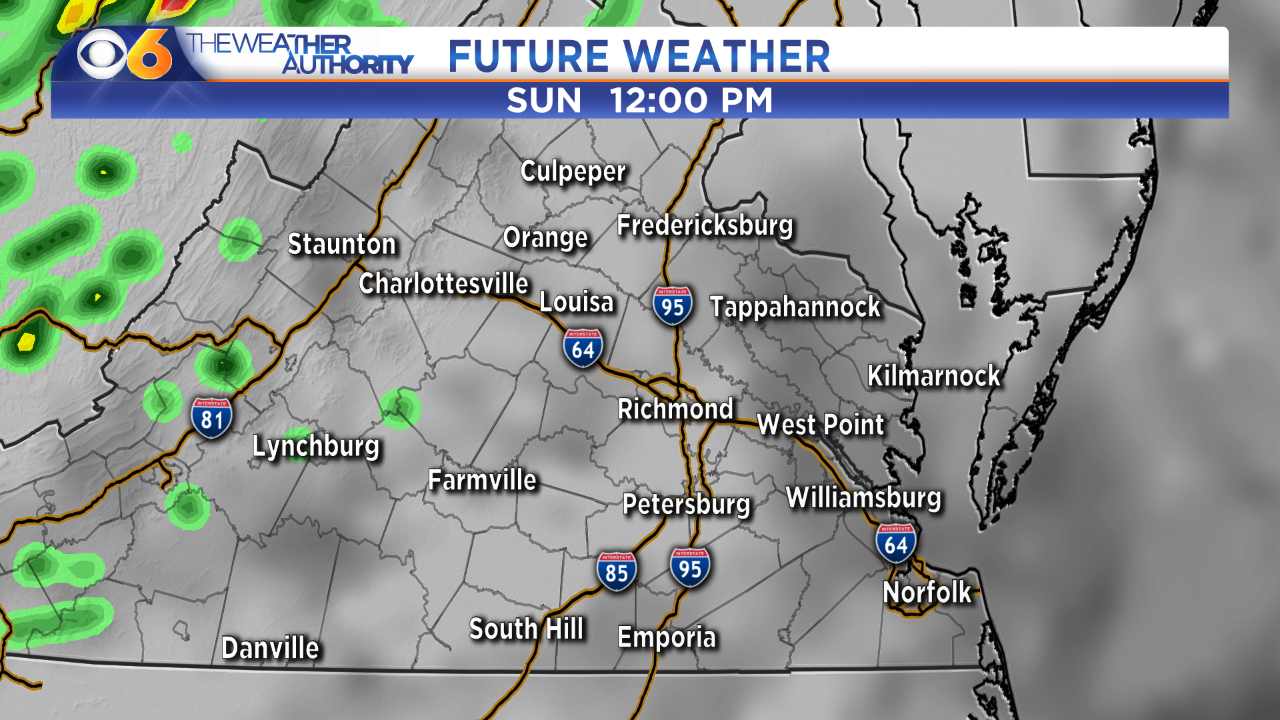 RICHMOND, Va. -- A strong cold front will move in from the west and trigger thunderstorms Sunday afternoon and evening.