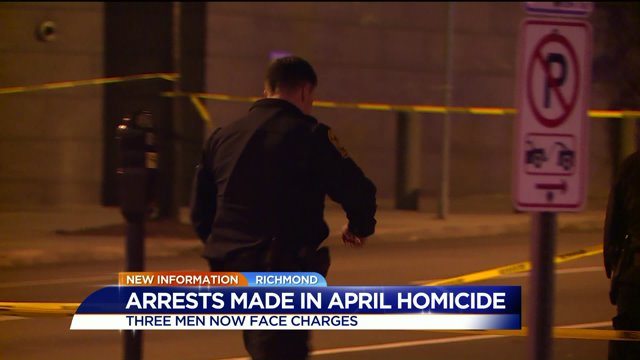 RICHMOND, Va. – Police have arrested three men in connection with a murder just outside the federal courthouse on April 10, 2016. Police said the trio turned themselves into authorities Wednesday.