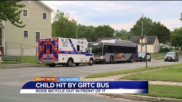 RICHMOND, Va. – A child has been transported to the hospital after being struck on his bicycle by a GRTC bus in Richmond’s Manchester area.