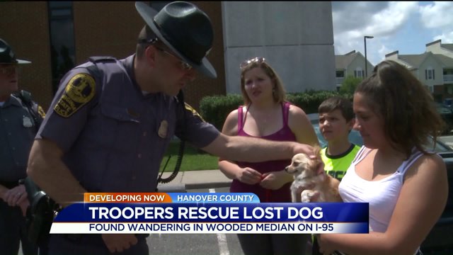 HANOVER COUNTY, Va. -- A Richmond family is thanking two Virginia State Police troopers for rescuing their Chihuahua Fluffy from Interstate 95.