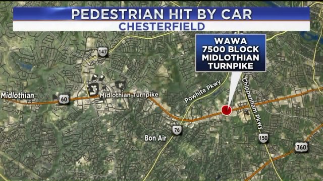 Chesterfield Police responded to reports of a pedestrian hit in front of the Wawa in the 7500 block around 11:50 p.m.