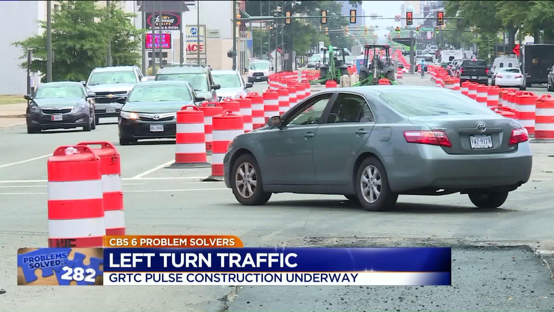 GRTC officials said that based on a review of traffic volumes between Thompson Street and Foushee Street as well as community input received from numerous public meetings, left-turn movements from exclusive/dedicated left-turn lanes will be allowed at the following locations: