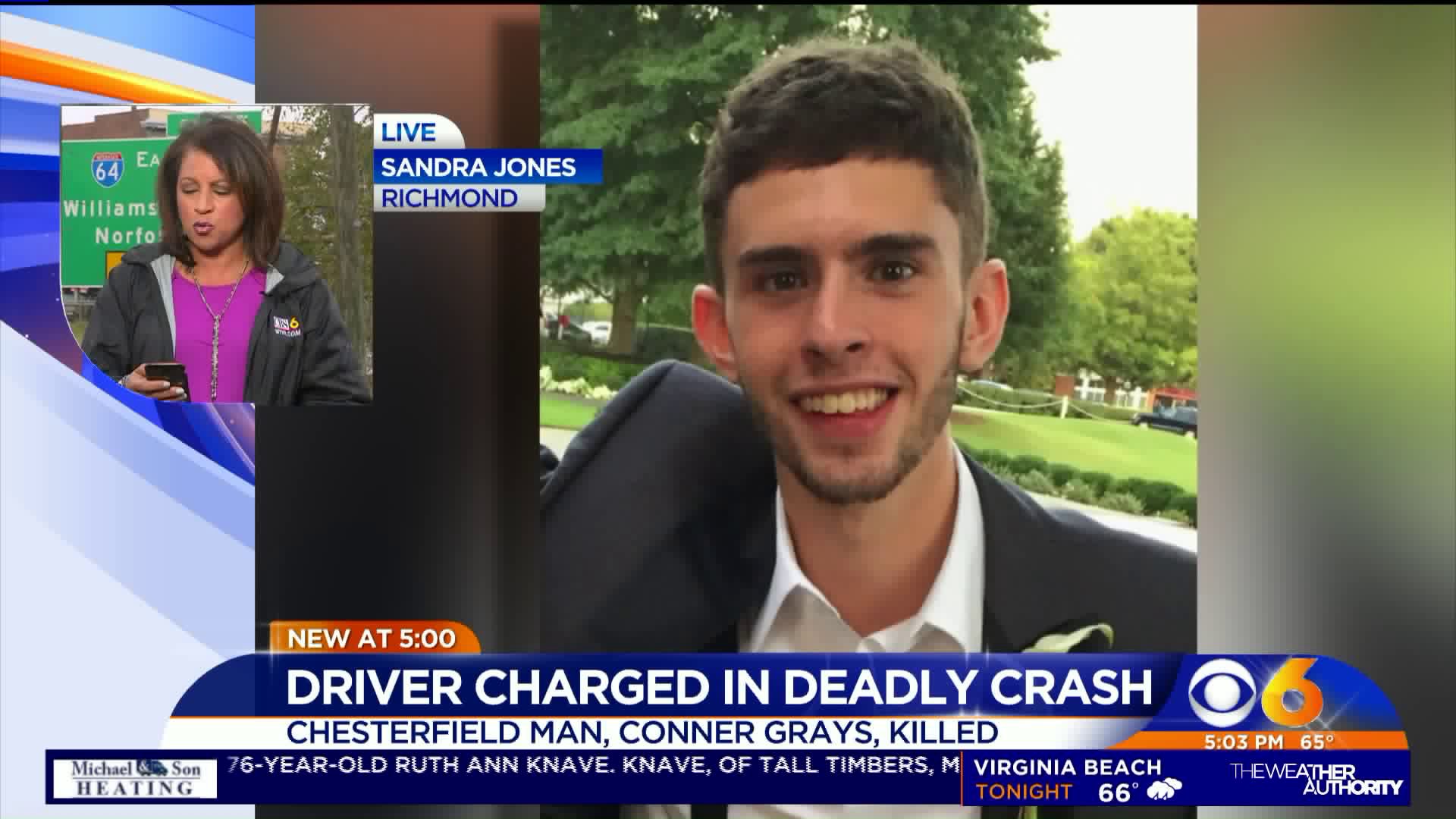 Crawford's passenger, 20-year-old Conner Gays, of Chesterfield, was unable to escape the fiery wreckage and died at the scene.
