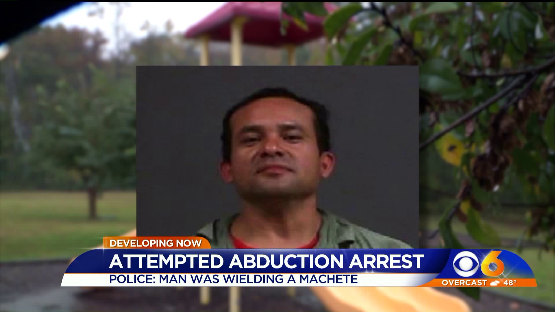 CHESTERFIELD COUNTY, Va. -- Police arrested a man with a machete who tried to abduct a child after exposing himself to her, Chesterfield Police Lt. Don Story said.