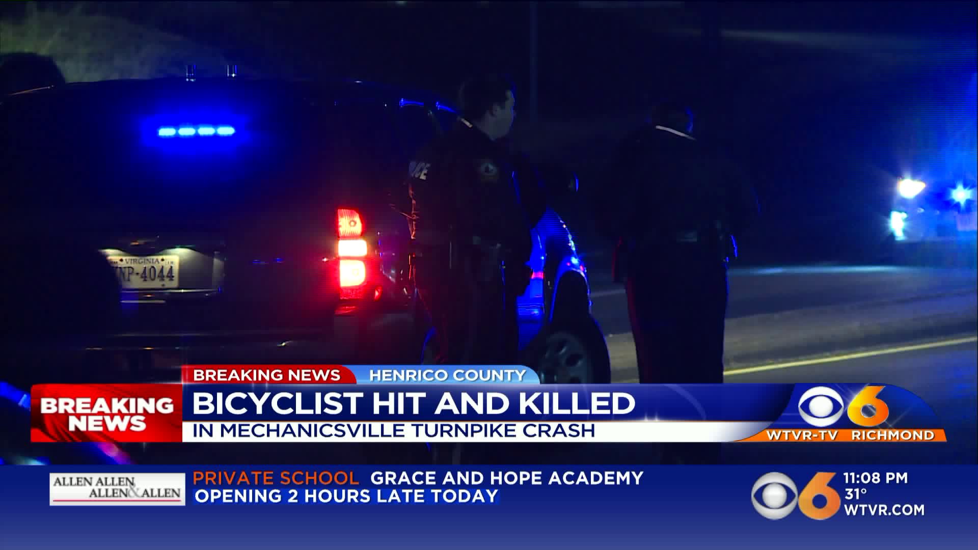 Police said around 8:30 p.m., Henrico Police and responders were called to the 3300 Block of Mechanicsville Tnpk. just north Harvie Road for a bicyclist that had been struck by a vehicle.