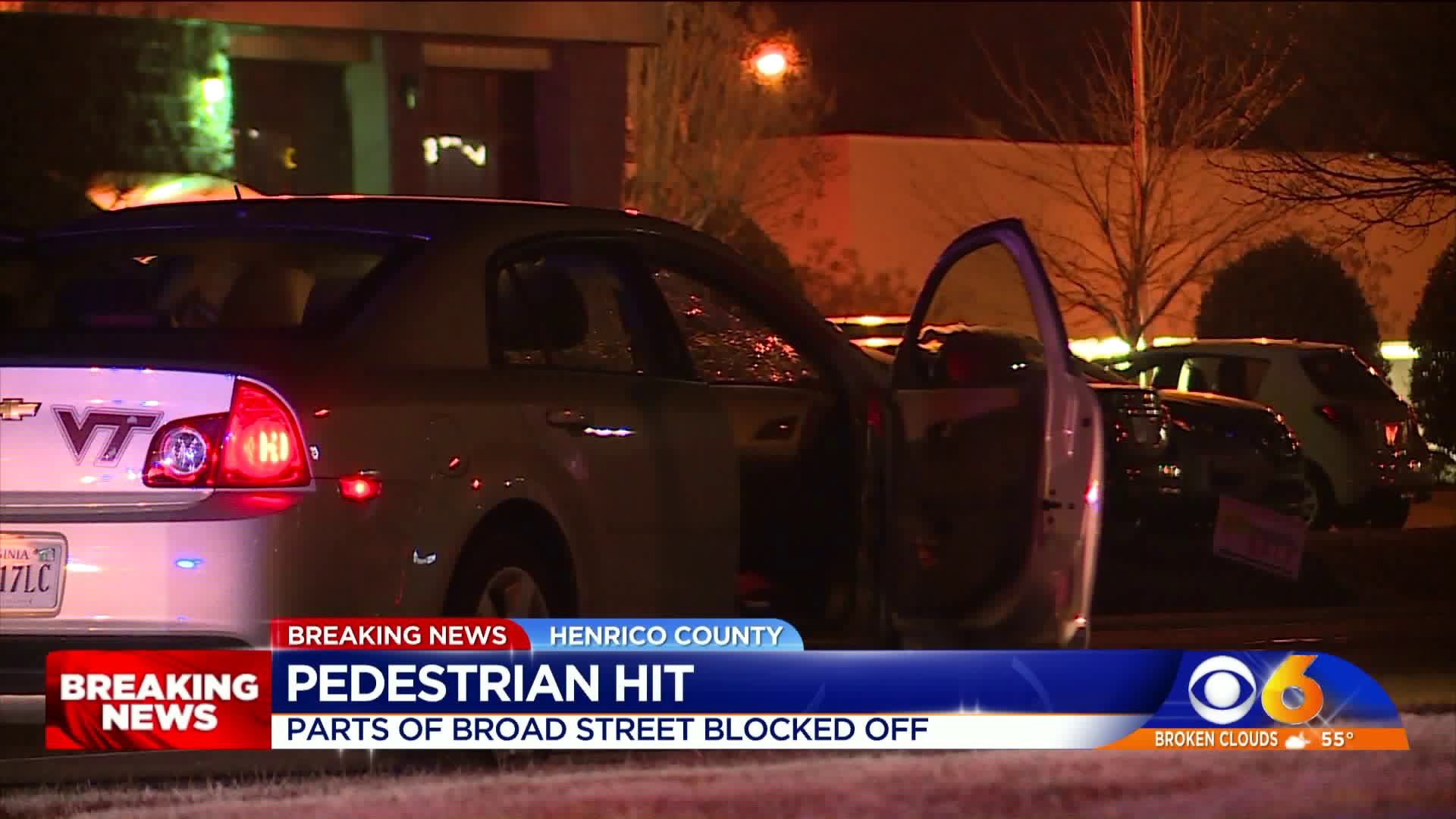 HENRICO COUNTY, Va. -- A woman was struck by a vehicle on West Broad Street in Henrico County Monday night has died, according to Henrico Police. The incident happened along the 8000 block of West Broad St., just east of Parham Road, at about 9:08 p.m.