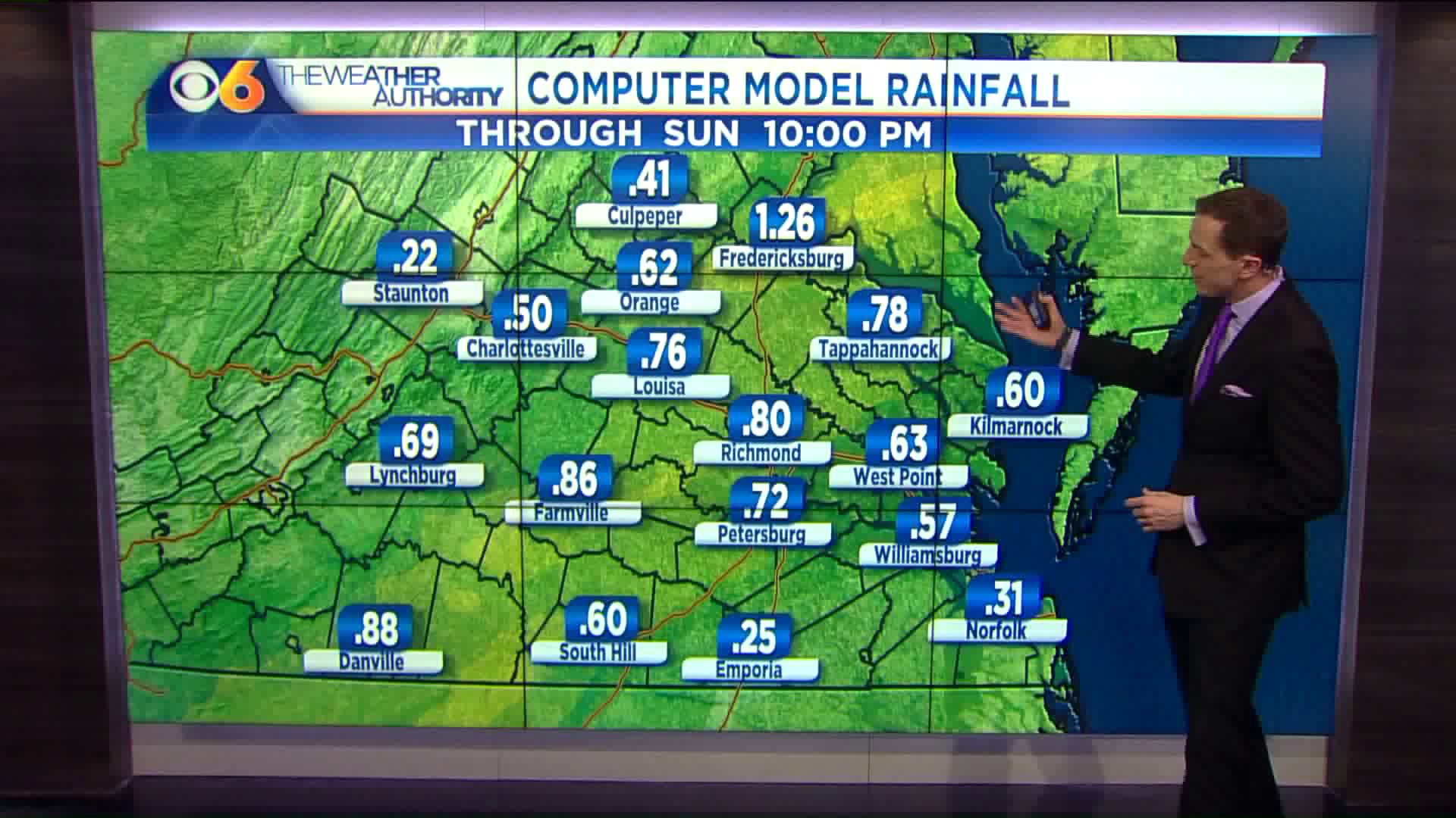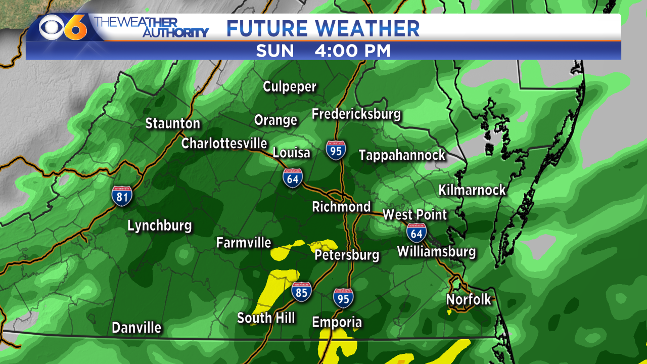 RICHMOND, Va. -- Sunday opened with rain falling before daybreak, and rain will continue throughout the day into Sunday night.
