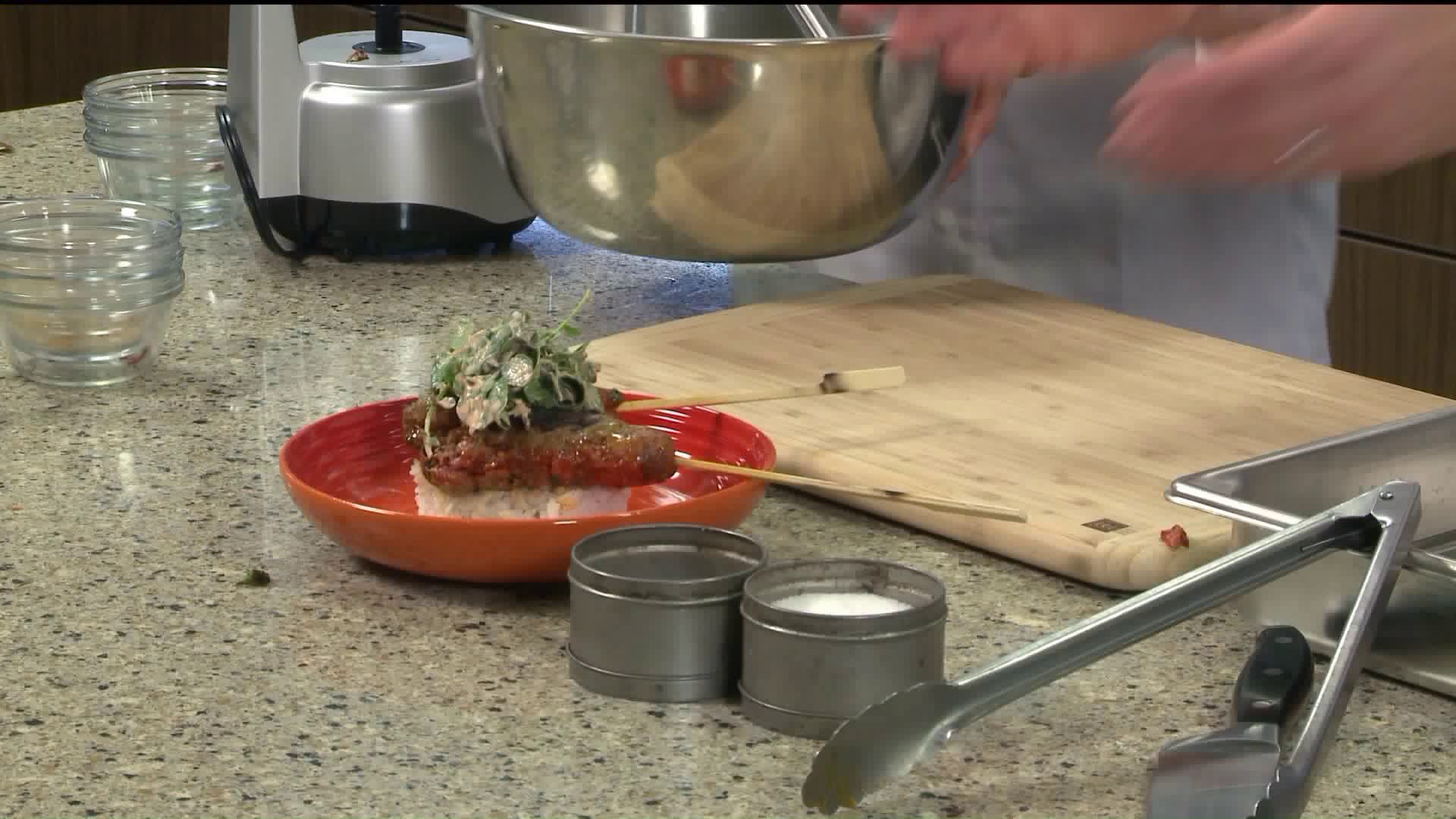 RICHMOND, Va - Chef Brian Mullins from Publix Aprons Cooking School showed Jessica how to make a Lamb Kofta and Watercress Salad from the menu of the school's Persian Feast demo class.