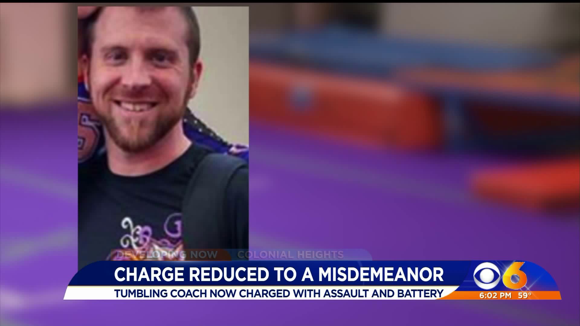 COLONIAL HEIGHTS, Va. – A local tumbling coach who was accused of sexually assaulting a teen girl is no longer facing a felony charge after a court appearance Tuesday in Colonial Heights.
