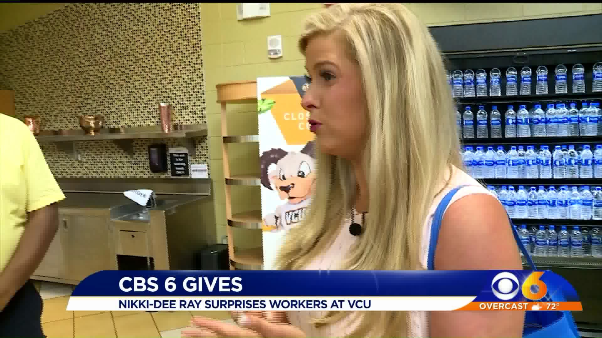 RICHMOND, Va. -- For this week's edition of CBS 6 Gives, Nikki-Dee Ray surprised employees of Jonah L. Larrick Student Center and Dining Hall at Virginia Commonwealth University.