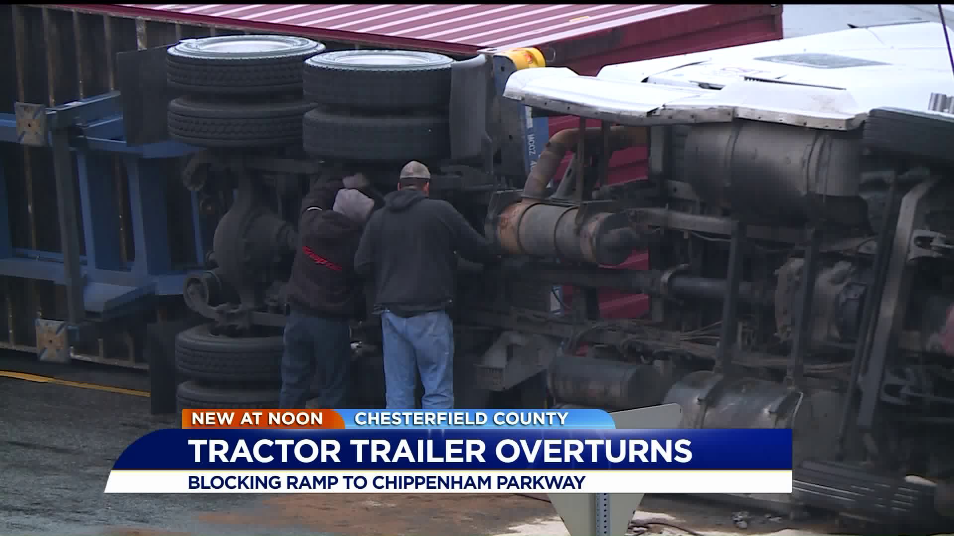 CHESTERFIELD COUNTY, Va. -- An overturned truck slowed traffic in Chesterfield Wednesday morning.