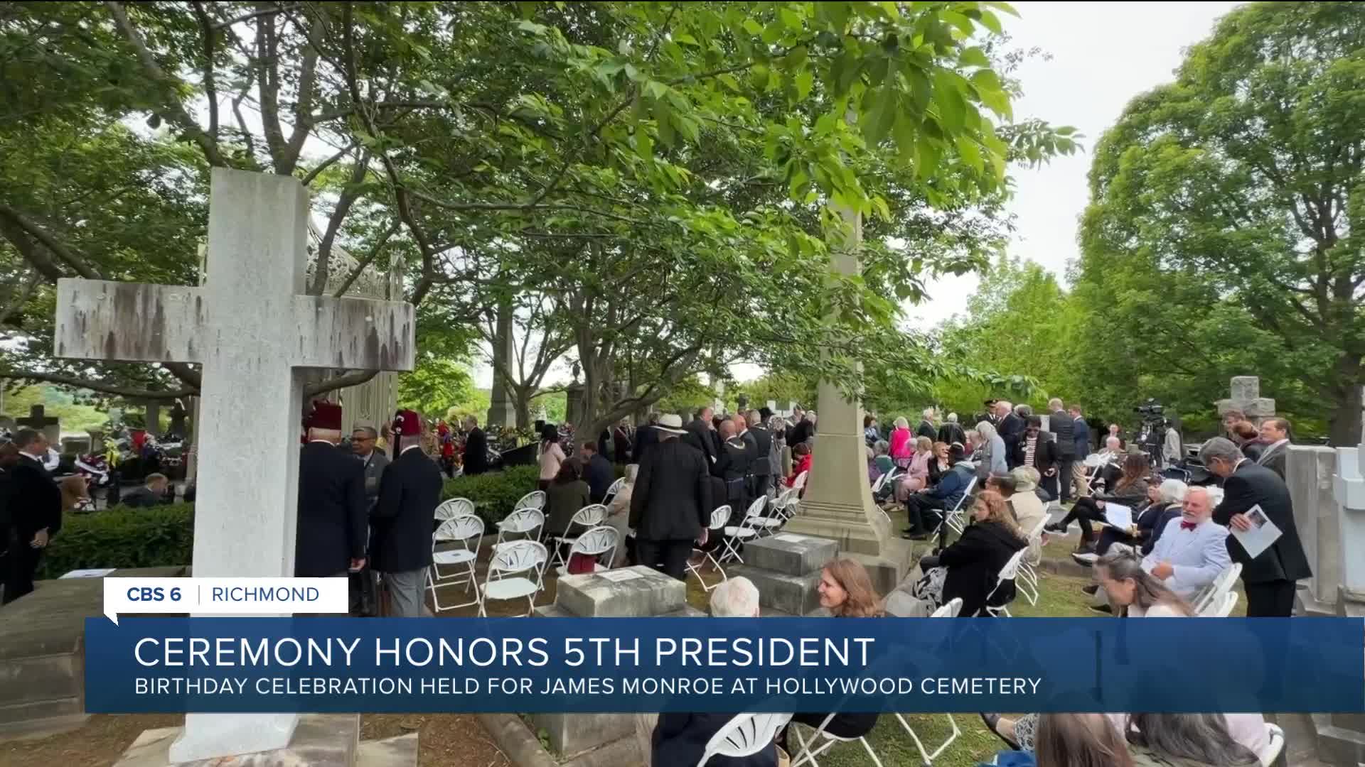 RICHMOND, Va. — The James Monroe Memorial Foundation held a celebration at Hollywood Cemetery in Richmond Tuesday to honor the 268th birthday of former President James Monroe.