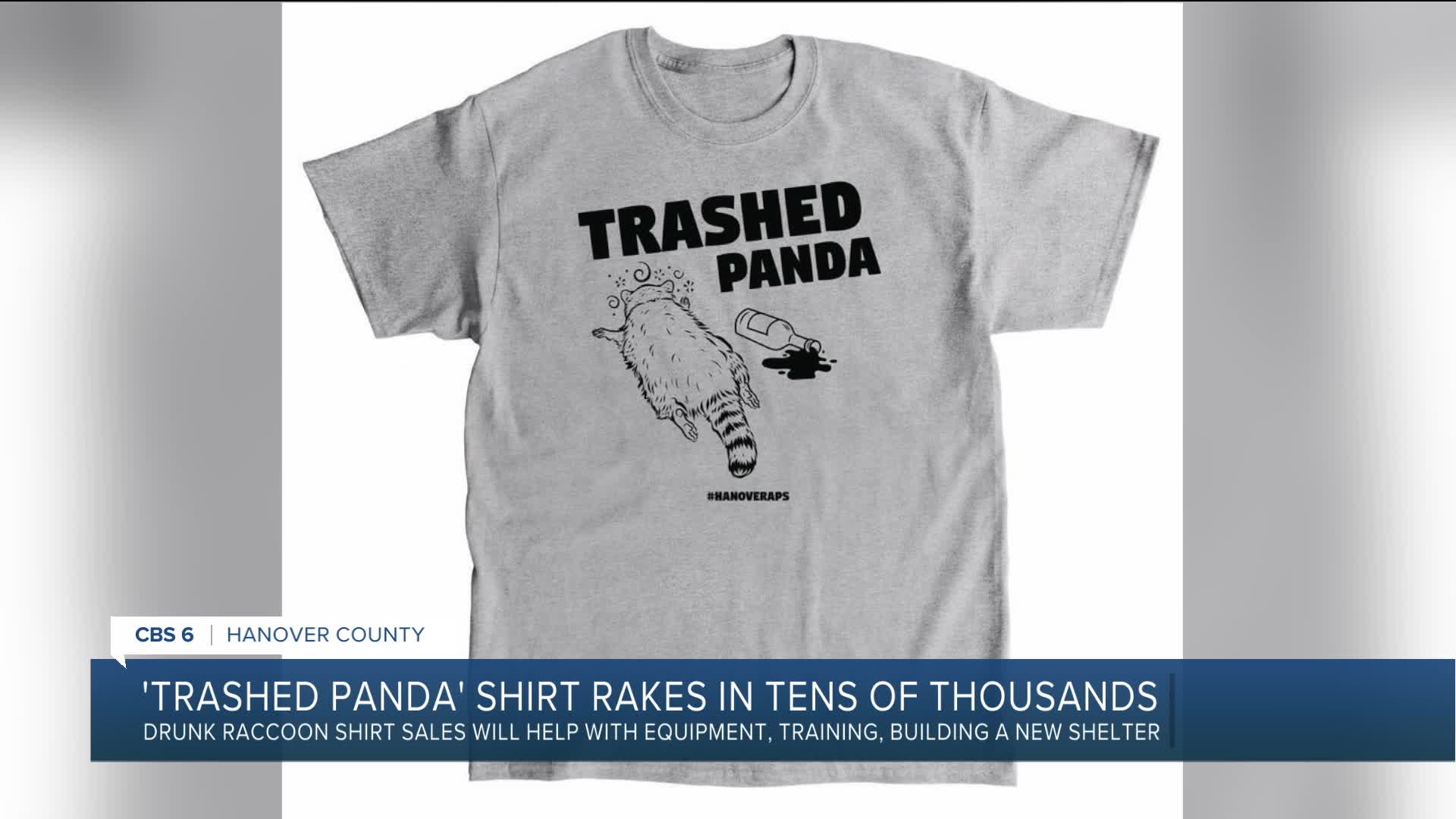 The Hanover County Animal Protection and Shelter that rescued the intoxicated raccoon is selling "Trashed Panda" T-shirts online to raise funds for shelter animal care. The shirts feature an illustration of Al, who broke into the ABC Store in Ashland, broke bottles and drank their contents before passing out near the toilet.