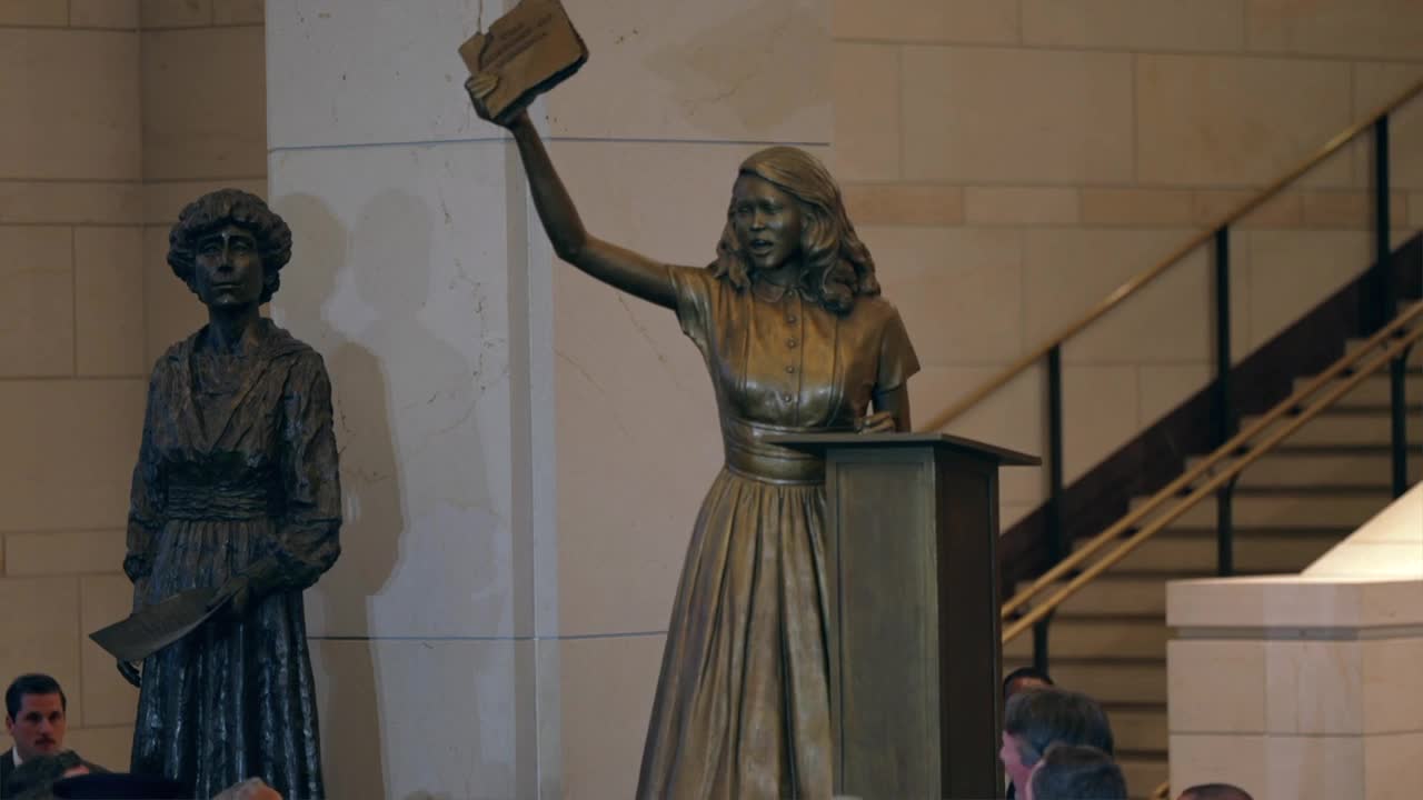 The 8-foot statue depicts Johns holding a book and will stand in the Capitol's Statuary Hall, representing Virginia alongside George Washington. Johns becomes only the 15th woman represented in Statuary Hall and only the third teenager or child, joining Sacagawea and Helen Keller.