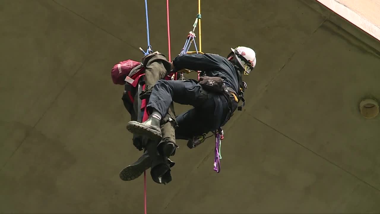 During the training sessions, firefighters will be rappelling off the side of the exit ramp to I-95 South, which is currently not open to traffic, to simulate the rescue of a trapped driver.