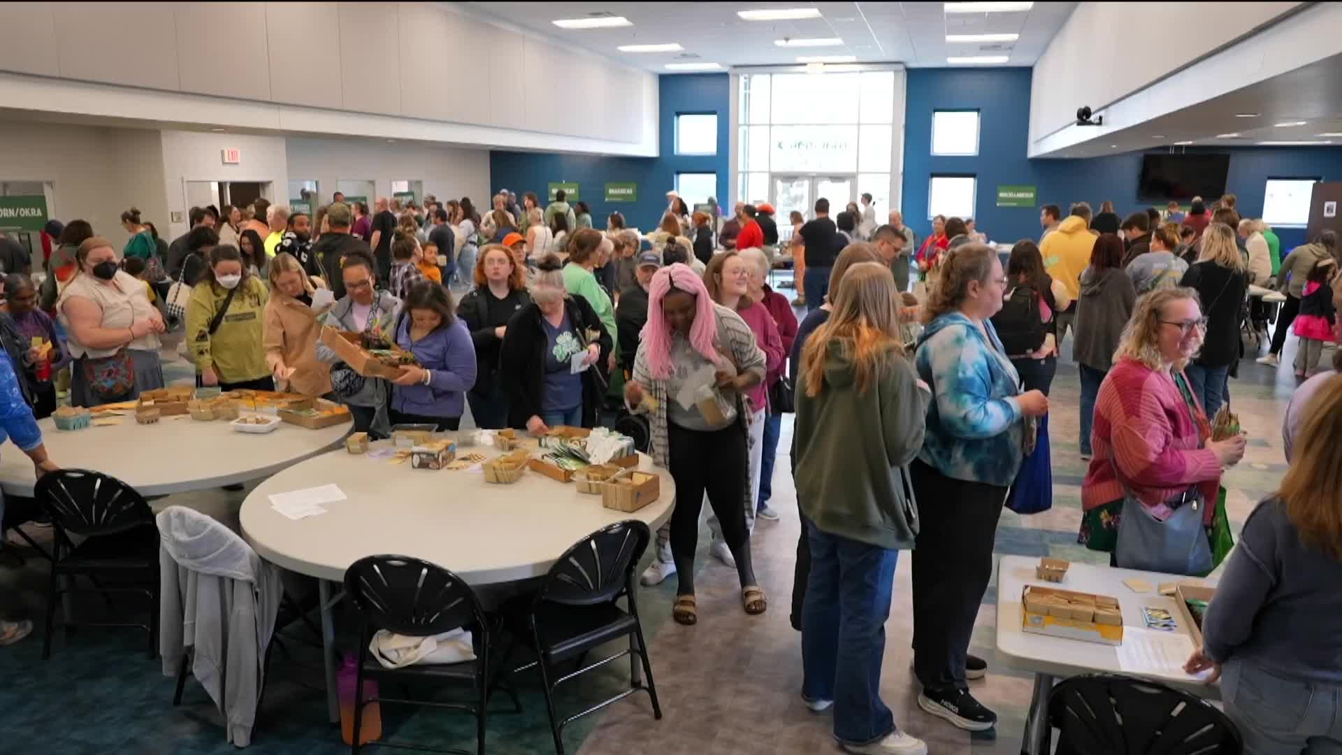Attendees received a sandwich bag capable of holding roughly 70 seed packets, which they could fill for free from booths organized by category — including legumes, peppers, eggplants, annual flowers, native plants, and herbs. This year, the event also featured approximately 1,100 live plant donations, predominantly from community vendors and master gardeners.