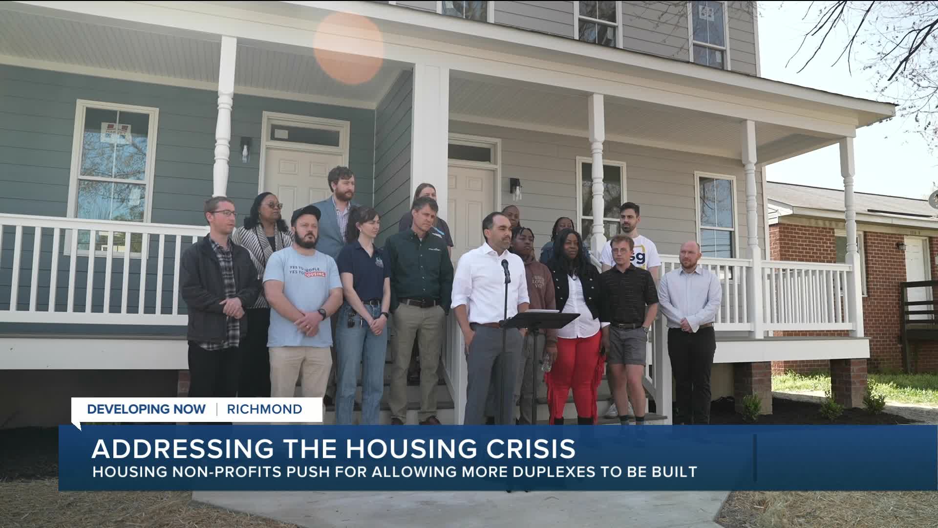 RICHMOND, Va. — A coalition of housing nonprofits led by Housing Opportunities Made Equal held a news conference Tuesday to advocate for allowing more duplexes to be built to help address Richmond's housing crisis.