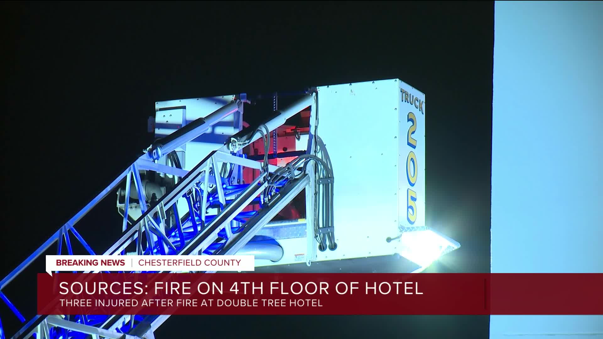 CHESTERFIELD COUNTY, Va. β Two people were treated for injuries after a fire at a DoubleTree Hotel in Chesterfield on Friday evening.