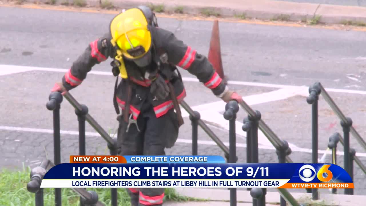 "Usually we do 10 rounds, but, today we do 13 for 110 floors and then in-between we’re doing 13 push ups at the bottom and 13 push-ups at the top to do 343 push ups. Basically, just to honor the fallen," said Lt. Leigh Bolick with Hanover County Fire & EMS.