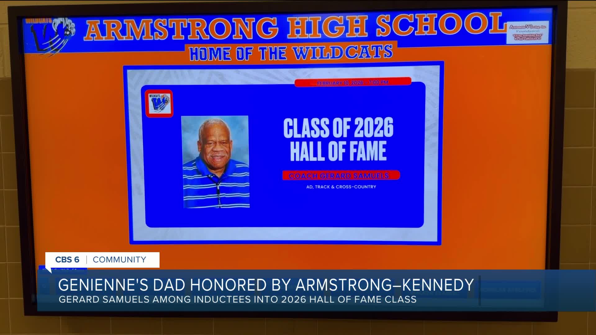 Coach Gerard Samuels was inducted into the Armstrong-Kennedy Athletic Hall of Fame on Monday night, with family, friends and former athletes gathering to celebrate his legacy. His daughters, CBS 6 Anchor GeNienne Samuels and Mercedes Branch, accepted the honor on his behalf, with his first daughter DeHavill and Rogers watching on video. Samuels unexpectedly passed in 2021.
