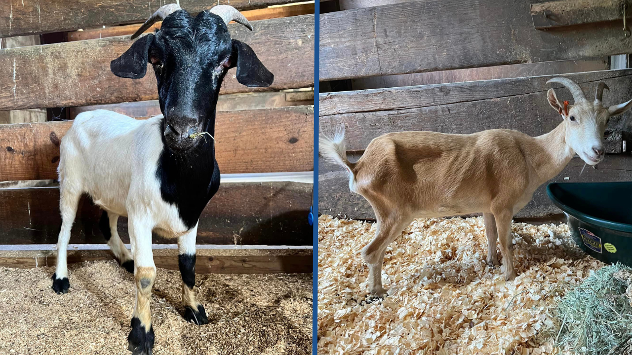 Helen was described as having a raging upper respiratory infection while the other goat, named Stumpy Sarah, was described as having a "stump 3/4 back leg."