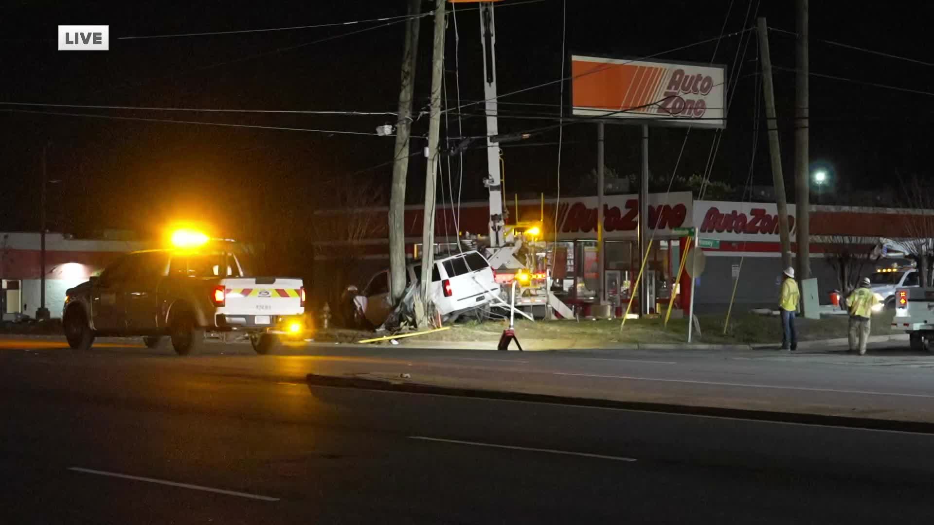 The crash damaged power poles near an AutoZone by the Richmond Raceway and Hussey Lane.