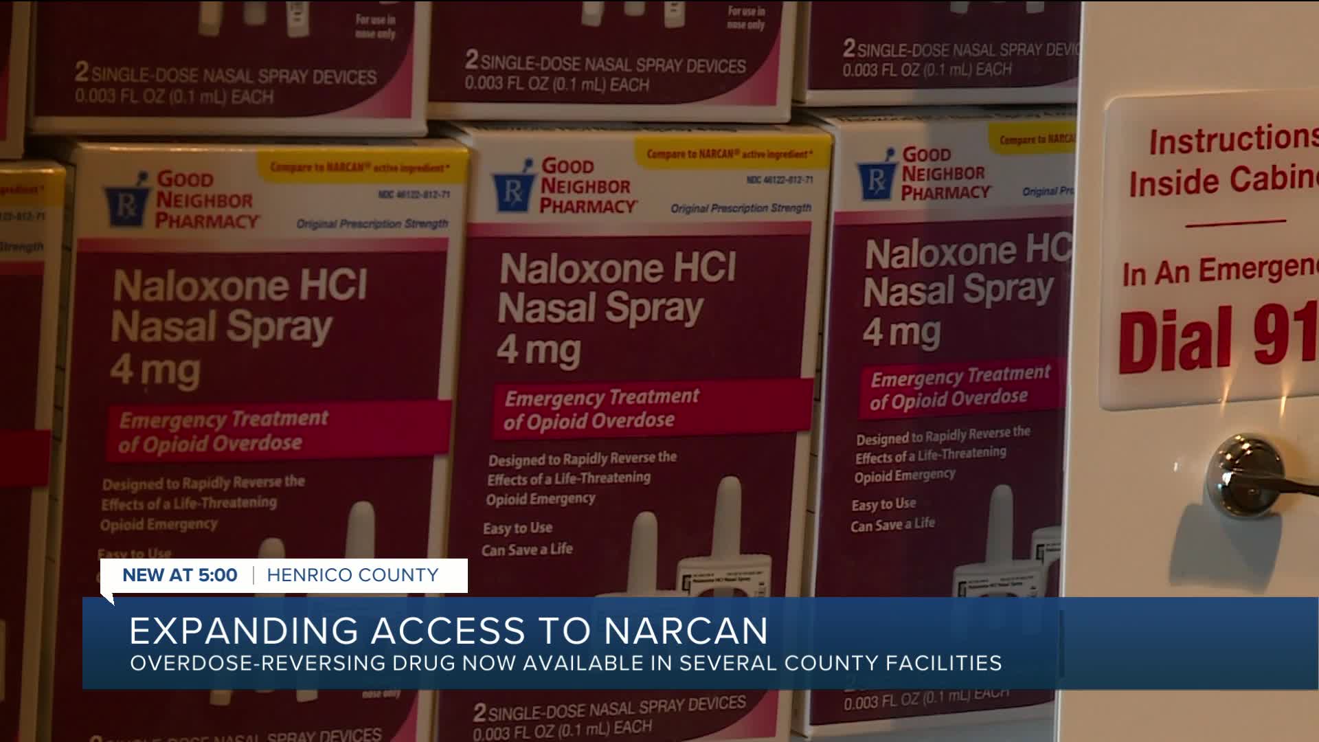 HENRICO COUNTY, Va. — Henrico County has launched a pilot program to make the life-saving drug naloxone, also known as Narcan, available at no cost in several public locations throughout the county.