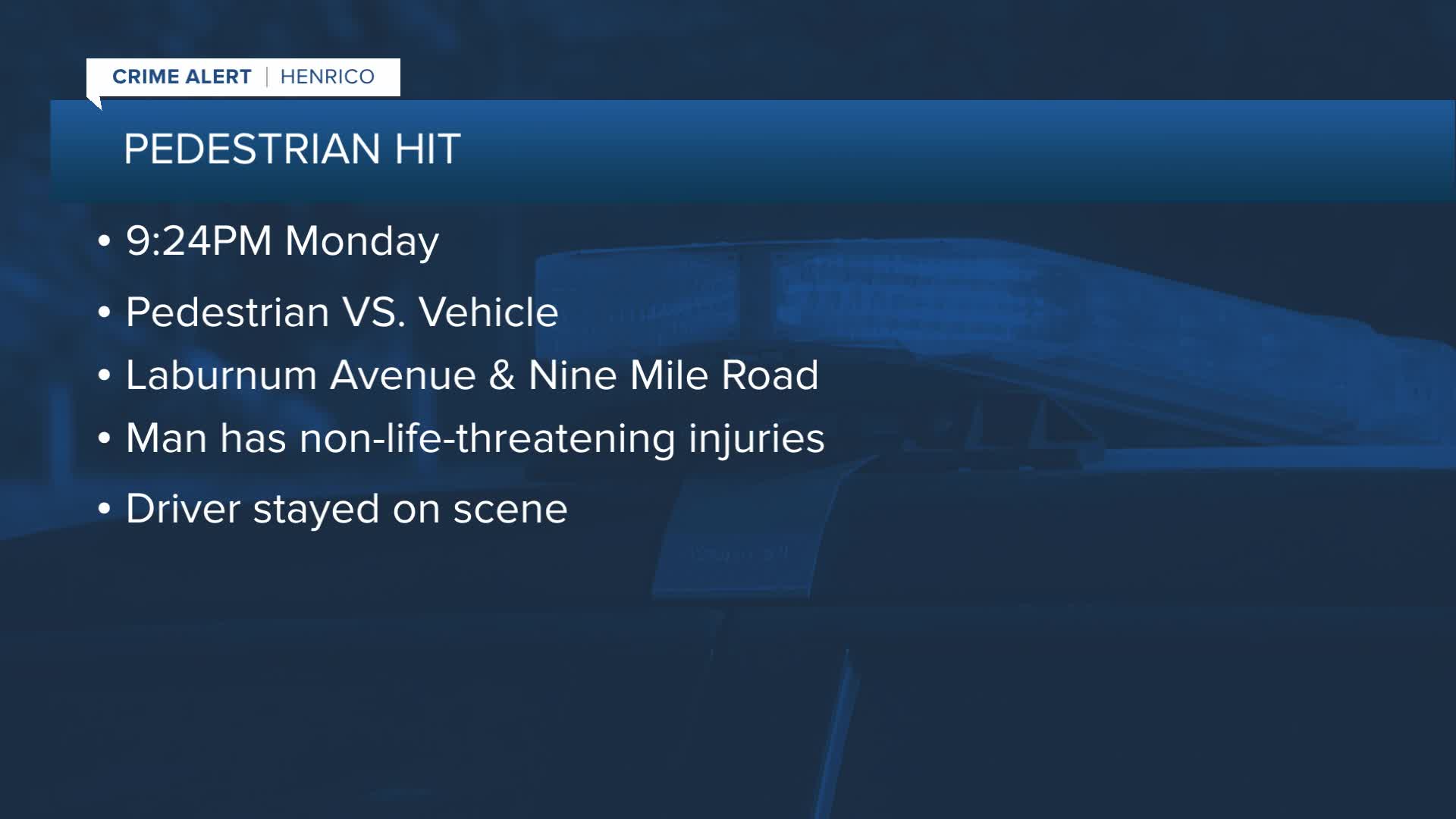 HENRICO COUNTY, Va. — A driver hit a pedestrian in Henrico County on Monday night, according to police.