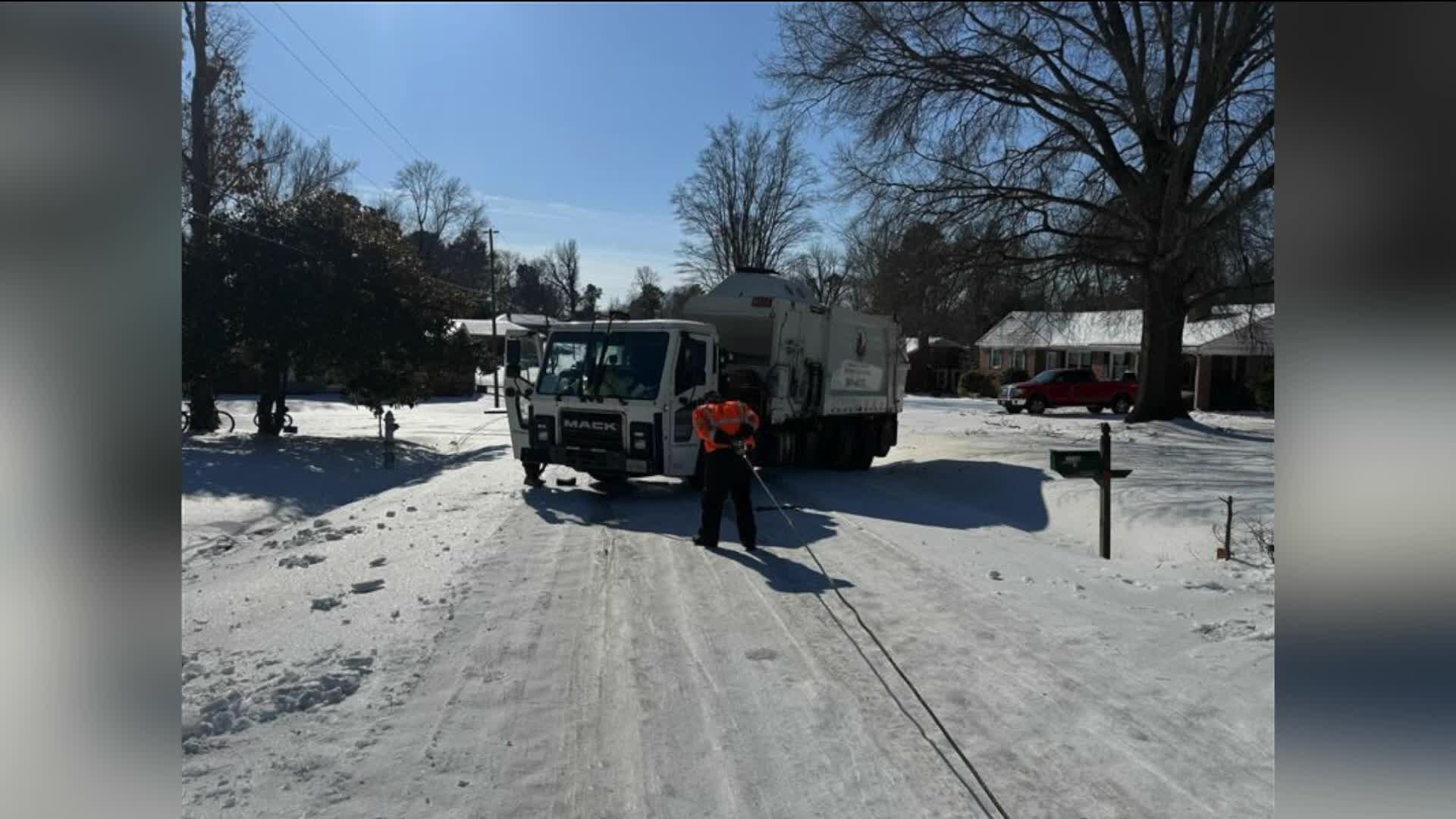 The county asked neighbors to leave their trash cans out until further notice, as crews will resume collection as soon as conditions improve. Areas that can be safely serviced will still receive collection Wednesday.