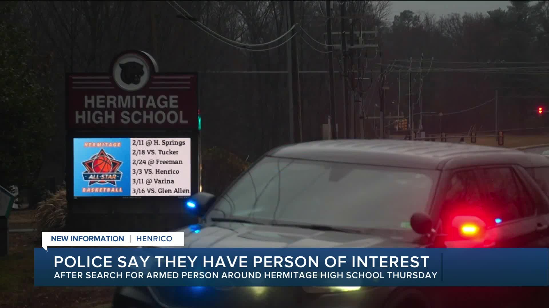HENRICO COUNTY, Va. β Police say they have identified a "person of interest" after the report of an armed person in the area prompted a lockdown at Hermitage High School on Thursday.