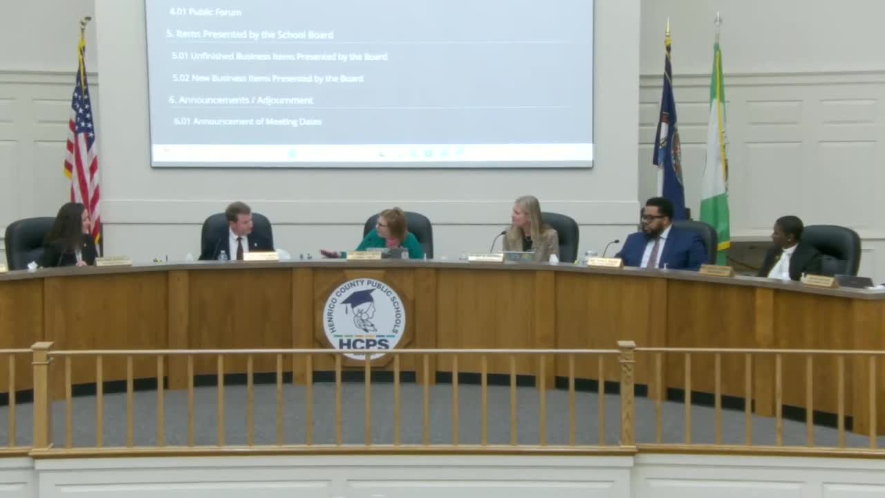 HENRICO COUNTY, Va. — The Henrico School Board on Thursday elected Three Chopt District member Madison Irving as its new chair in a 4-1 vote – an abnormal occurrence for a board that often votes unanimously.