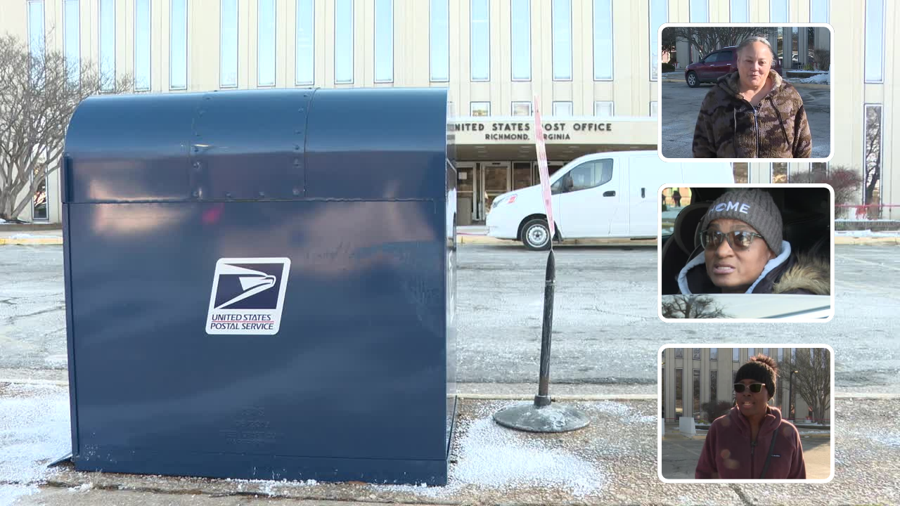 RICHMOND, Va. — Central Virginians are experiencing significant mail delivery delays due to icy road conditions, with some people visiting the main post office on Brook Road to retrieve their mail directly.